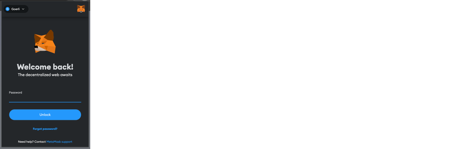 3. Ensure you're on the Goerli Testnet and unlock your wallet. (Interactions are consistent with the Ethereum mainnet.)