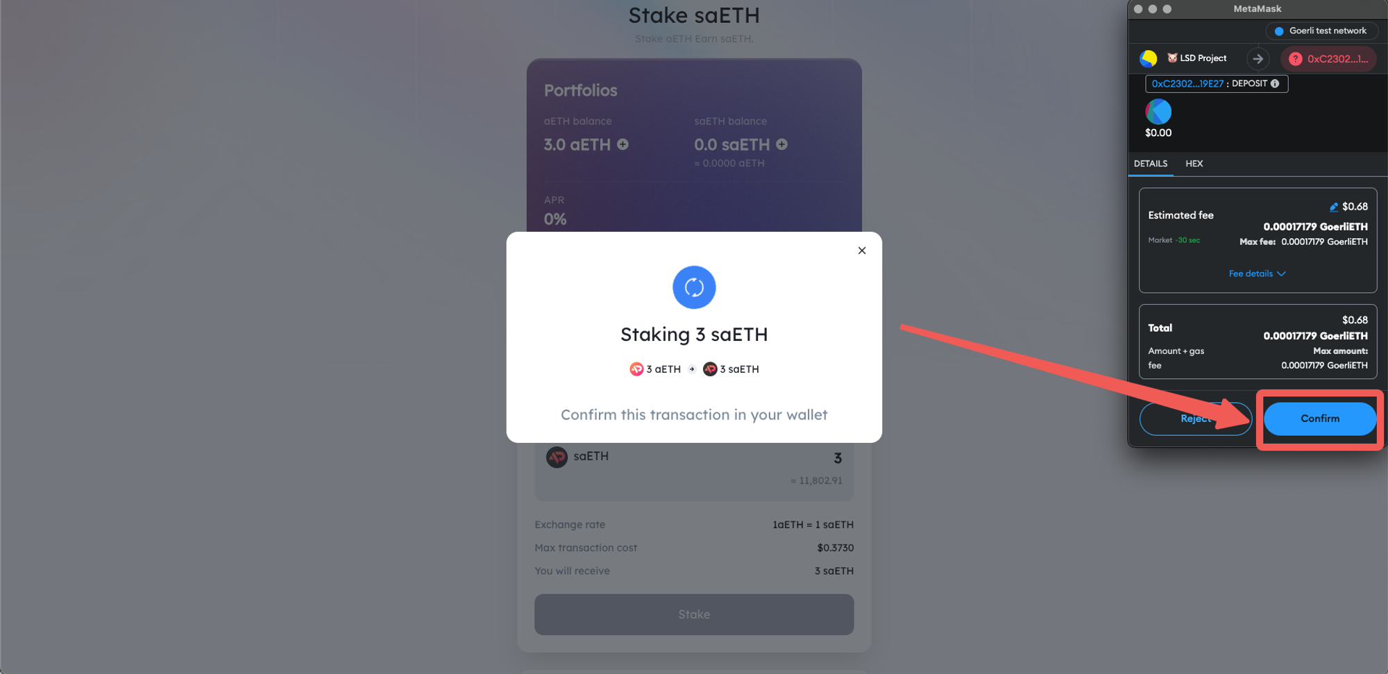 6. ✅ Your saETH balance will be displayed on the dApp.